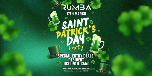 Enjoy the luck of the Irish at Rumba on 17th of March, for one of the biggest St Patricks Parties to hit London's West End!